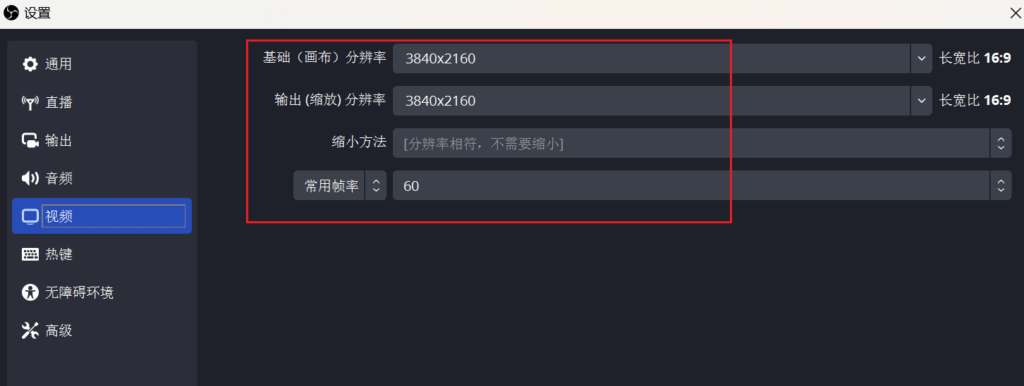 视频设置 画布分辨率一般设置为电脑显示器分辨率,帧率也是显示器最高分辨率。如果你是直播游戏,也可以根据自己的需求来选择。