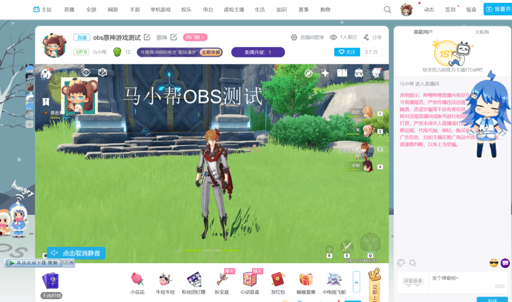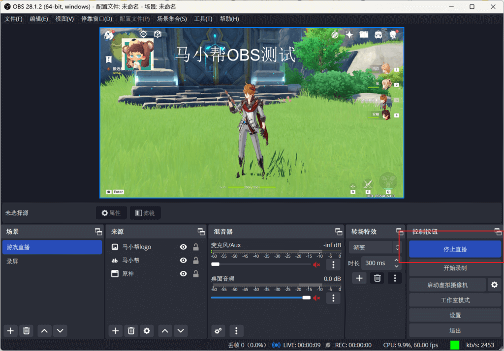 然后再回到OBS软件首页点击开始直播 ,这时候刷新你的你直播间就会有画面了。